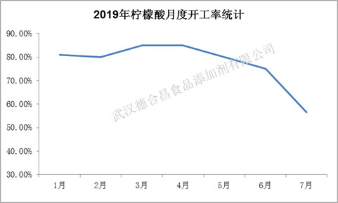 每年的七八月份,是檸檬酸產品的需求淡季,且受高溫影響,多數上游廠家會選擇在此時期進行設備維護與檢修。今年也是如此,自進入七月份后,檸檬生化率先停工檢修,再加上市場剛需支撐有限,廠家庫存壓力不斷加劇下其他上游生產廠家也紛紛加入檢修及限產行列,致使行業開工迅速降低。原本以為受行業開工走低利好支撐,市場貨源供應量減少下上游廠家趁機提漲概率較強,但不巧的是恰逢下游需求淡季,且在前期行業產能過剩嚴重下供應面依舊寬松,短期市場仍難出現供應缺口。因此在市場貨源消耗有限,供需矛盾尚存下,價格遲遲未出現反彈跡象,反而受此承壓,市場競價出貨現象嚴重,廠家高報低走現象普遍,致使成交維持弱勢。